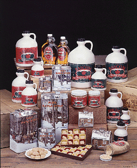Pure maple syrup and sugar is made from the sap of maple trees and is made by evaporating the sap until only pure maple syrup remains. Maple syrup is further evaporated until only the sugar remains. It takes between 30 and 50 gallons of sap to produce one gallon of syrup and one gallon of syrup to produce seven pounds of maple sugar. This is an all natural process with no chemicals, additives or any other foreign substance used. The syrup and sugar are 100% pure. MAPLE SYRUP Pure maple syrup is sold by grades established by the U.S.
